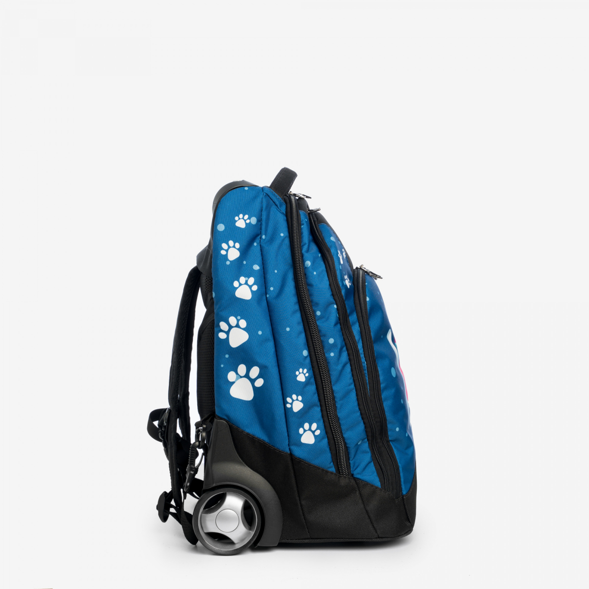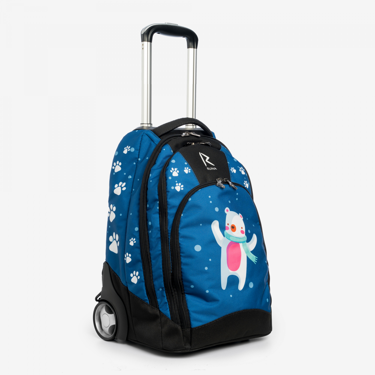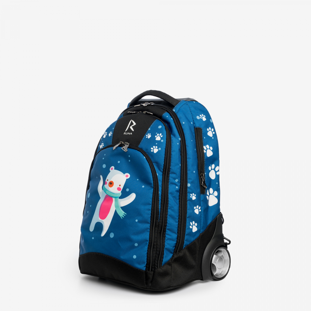 Прочные и бесшумные колеса изготовлены из полиуретана диаметром 80 мм с усиленной ступицей. В сумке предусмотрен чехол для колес, при использовании сумки, как рюкзака.