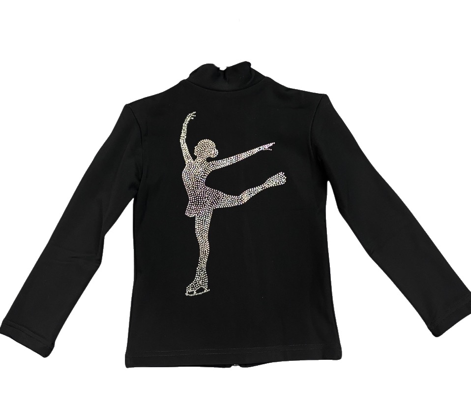 Кофта с аппликациями из страз на спинке в виде фигуристки.
