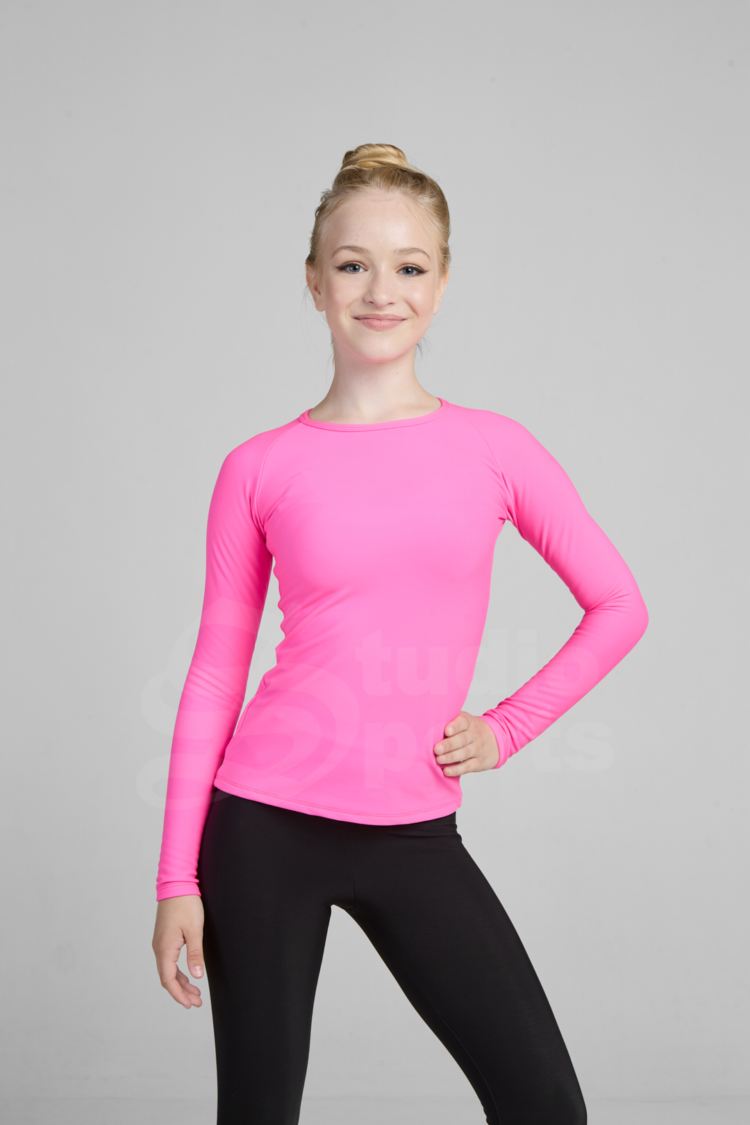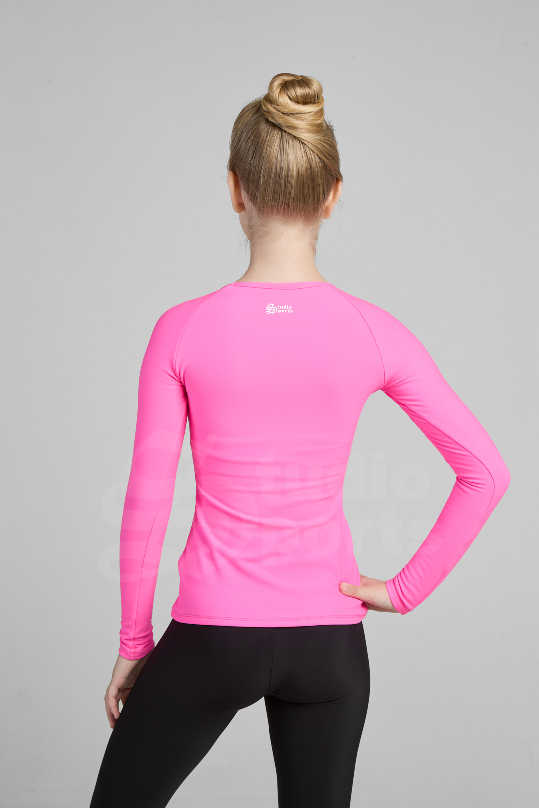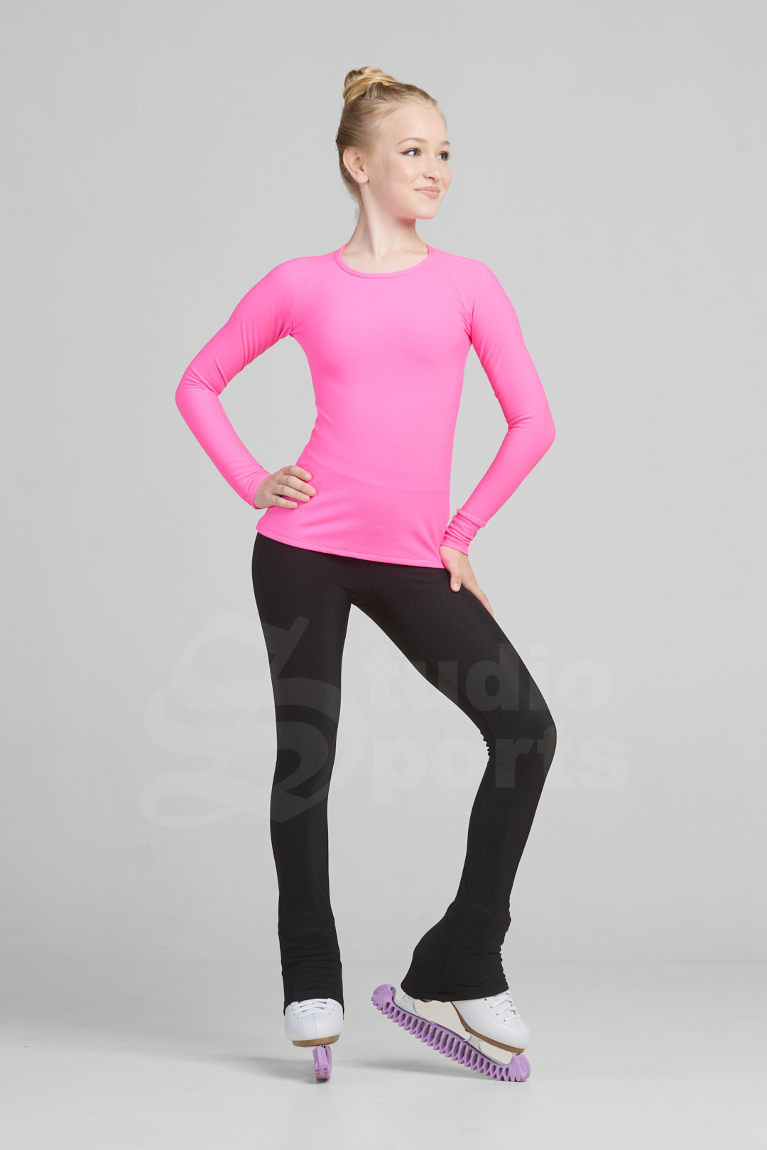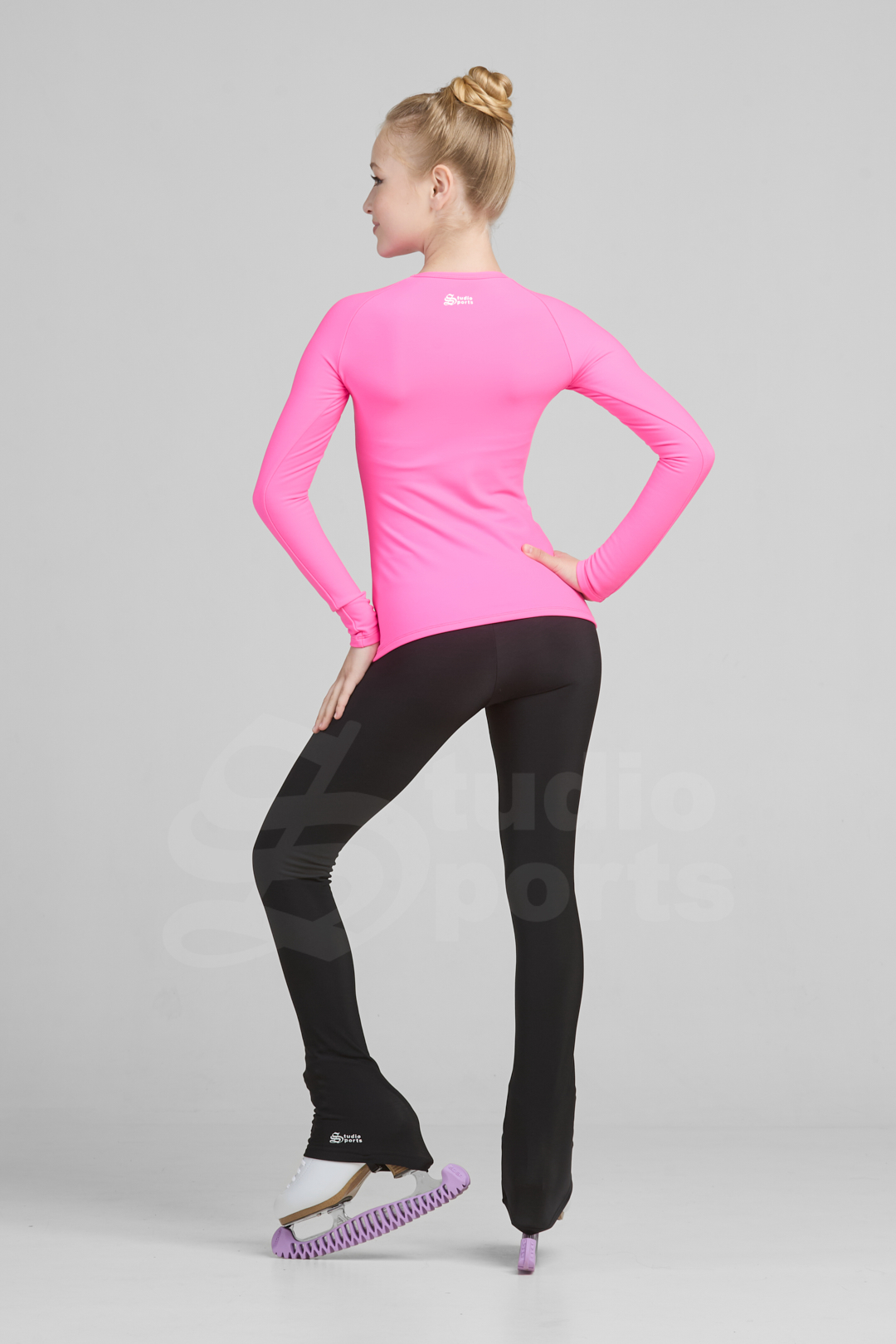 Лонгслив является универсальным предметом гардероба фигуристки. Прилегающего силуэта, рукава реглан. Горловина окантована термо тканью.